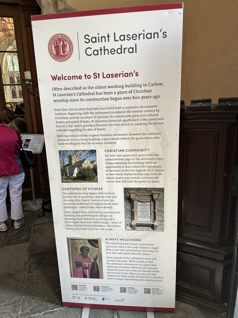 ​We then travelled on to Old Leighlin Cathedral where we had a conducted tour with Dean Canon Máirt Hanley who gave a talk on the very interesting history attached to the Cathedral and the various historical religious and secular figures associated with the Cathedral and the surrounding area.